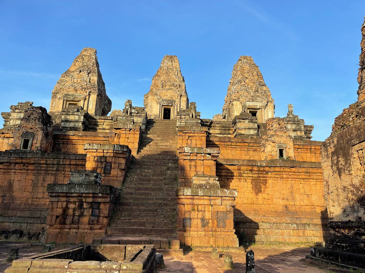 Start a visit at Kravan , a beautiful red brick color temple built for a trinity of Hindu god, Bramma, Visnu and Shiva and the tour will onward to Banteay Kdei, a Beautifull Buddhist temple founded by a famous ancient Khmer king, Jayavarman VII and the tour will onward to Taprom the famouse Jungle temple that was a setting place for movies Tom Raider feature Anjolina Jolie this morning tour will be followed by Takeo , TaNei and East Mebon, a brick structure temple located at Eastern Baray called Yashodharatataka.