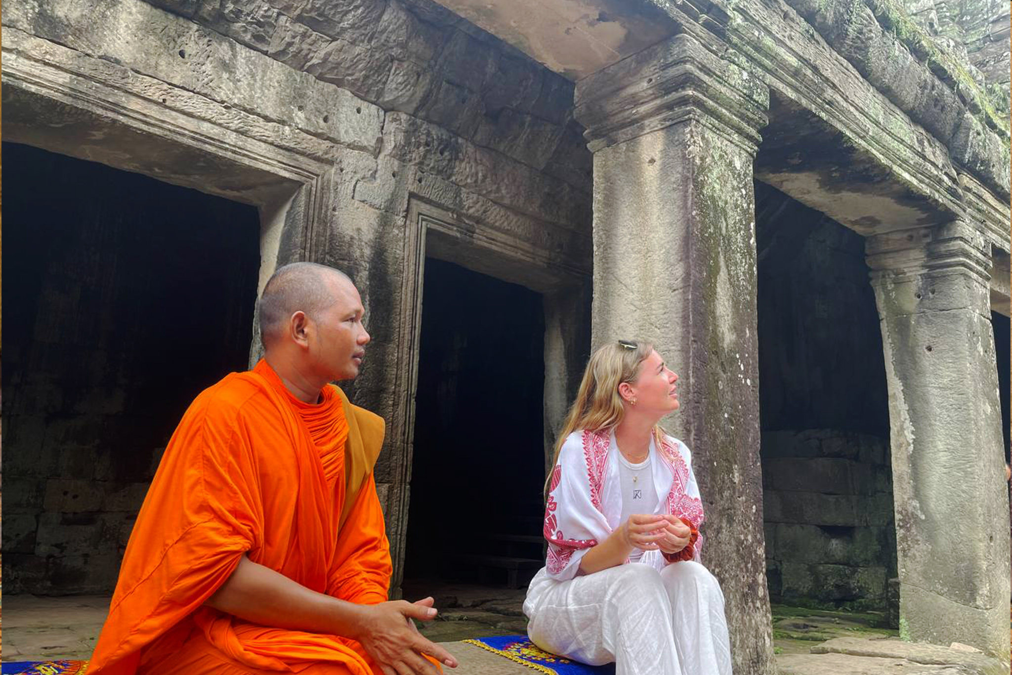 A sunrise meditation with a monk in Siem Reap is a serene and spiritual experience, combining the tranquility of the early morning with the guidance of a Buddhist monk. Here’s an overview of what to expect: